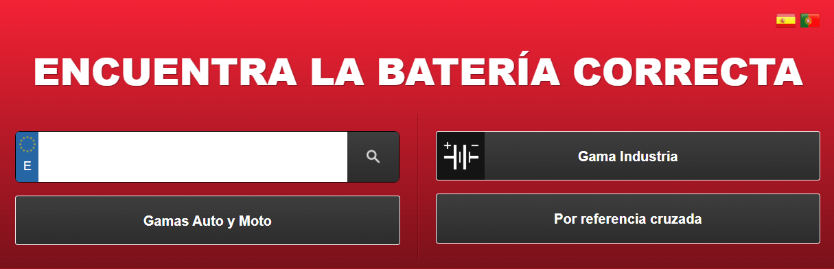 En la página principal de Yuasa verás un buscador prominente donde puedes introducir directamente tu matrícula. Es muy fácil de encontrar, normalmente está en la parte superior de la página.